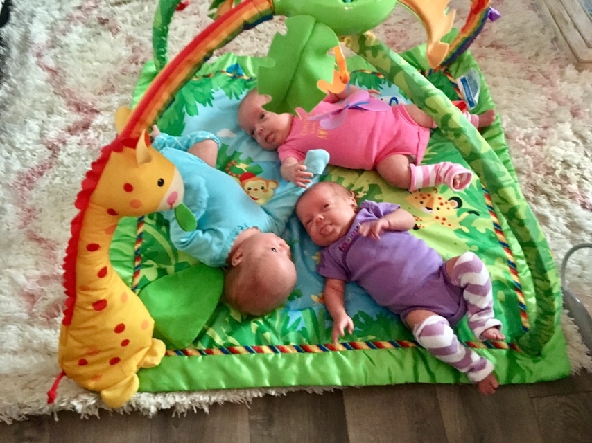 During the feed I also put them on the play mat for the first time to try to entertain them while I fed their sisters. Reagan loved it, and Emerie seemed pretty enthusiastic as well. Harper, on the other hand, was not really impressed, although she didn’t cry.