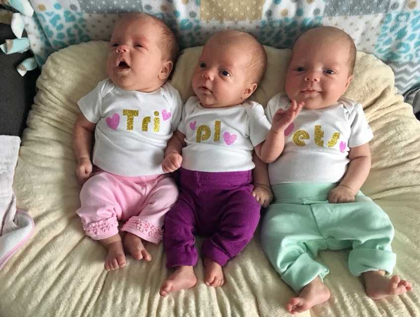 I wanted to share how the girls were doing at their two month checkup. They are increasing well on weights and if born through singleton pregnancy, would probably all be about 8 pounds.