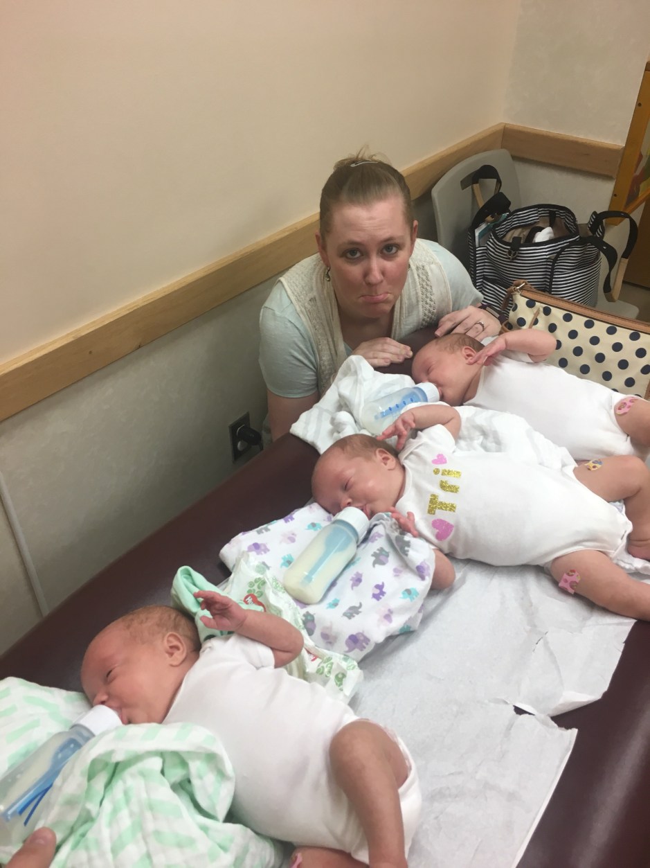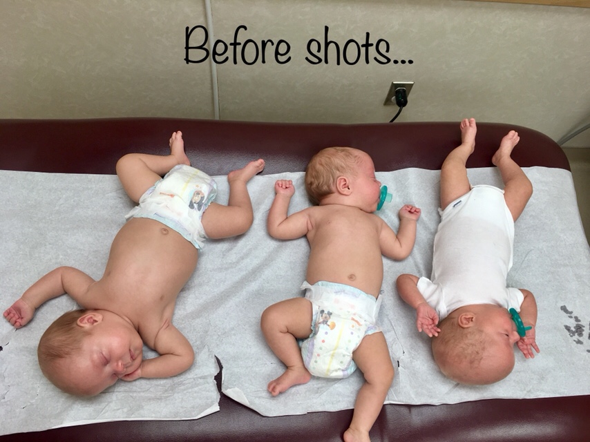 The rest of the day resulted in lots of baby snuggles, with Emerie the fussiest and wanting to constantly be held. A second dose of baby Tylenol helped them sleep for the night and by the time I’m writing this, they seem to be fine and their usual happy selves. We are definitely scheduling all future shots at the end of the workweek, both for our sanity and because triplet appointments take a lot longer!