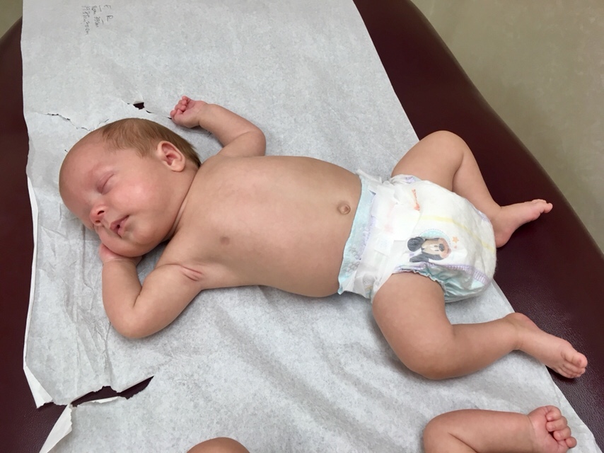 Reagan showed off her head lifting skills and thoroughly impressed the doctor. She tried rolling over as well but doesn’t quite have that figured out at this age.