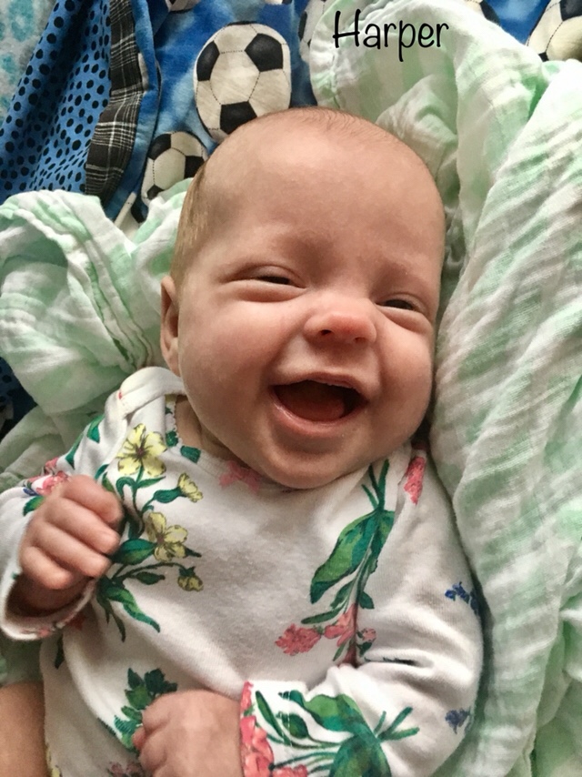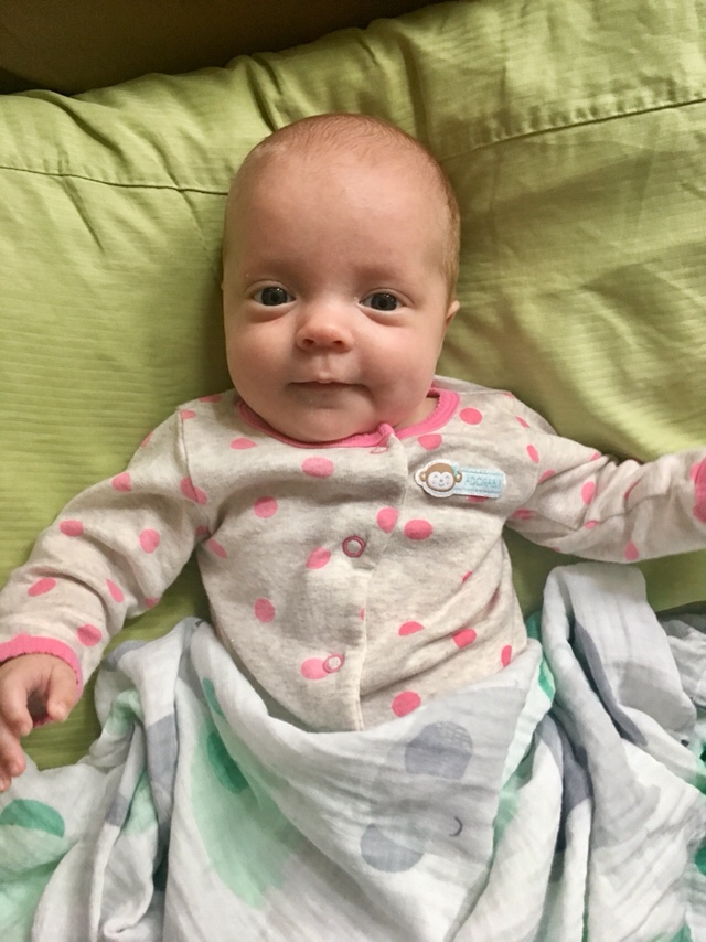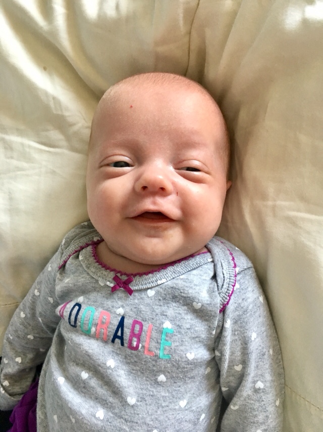 - She has started smiling a lot. When she wakes up in the morning she is all smiles for us. She’s also started baby talking a little, and it’s super cute!