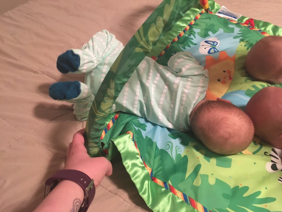 - Emerie likes the play mat as long as her sisters are on it with her.