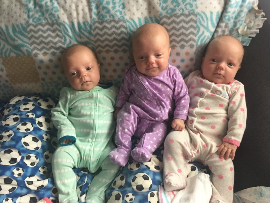 - Emerie is up to 9 pounds, 15 oz! She has grown the most of the three, but is still the smallest (by a bit!)