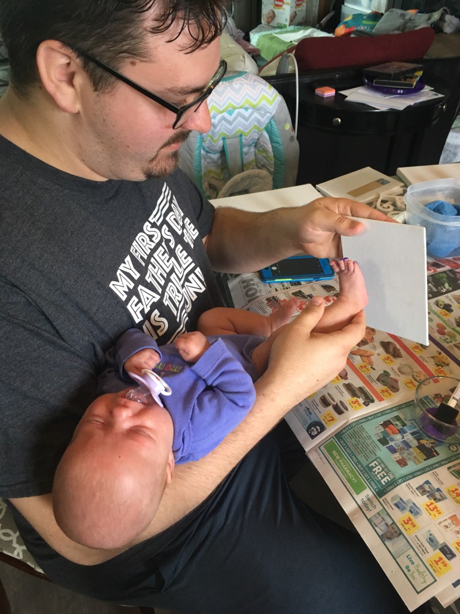 - Acrylic paint (it washes right off): don’t want any permanent purple baby feet!