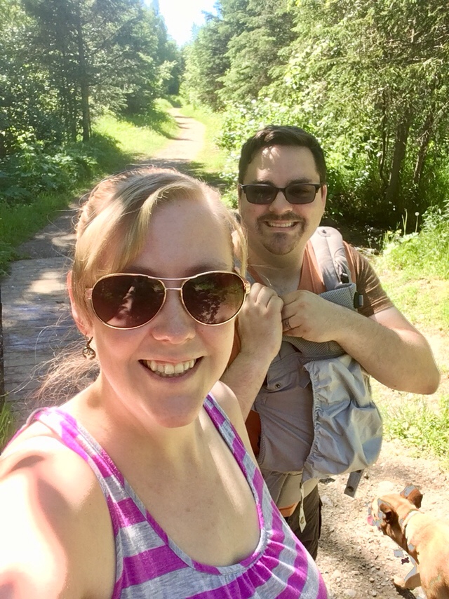 We took the girls on a hike on Sunday, since we rarely have 80 degree, beautiful sunny days (especially this summer!), and I think the high afternoon sun might have been a bit much for them, altho they were pretty good sports about it. And we managed to pack the pups in the back of my car with them!