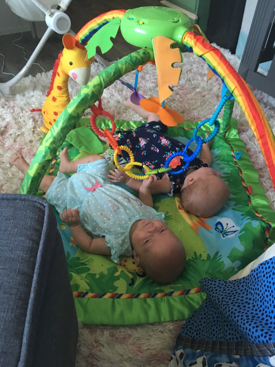 Play mat time is actually enjoyable now, which is a change! Harper and Reagan were entertained the entire time I fed Emerie, almost giggling and baby talking. Reagan even fell asleep after a while from all the fun.