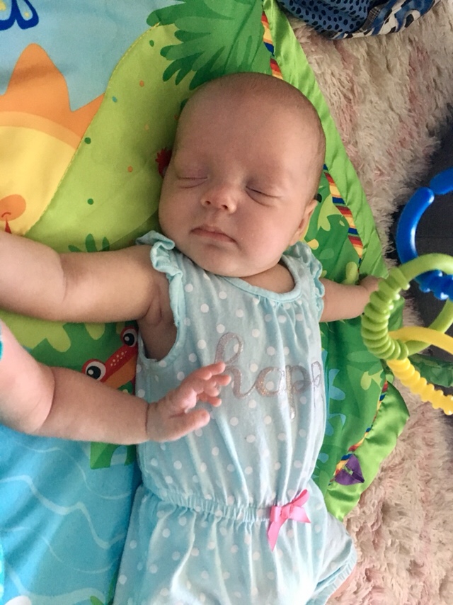 For the first time Emerie enjoyed play time and stayed on the mat without fussing for about 20 minutes! That’s definitely progress, especially with all her fussiness later in the day.
