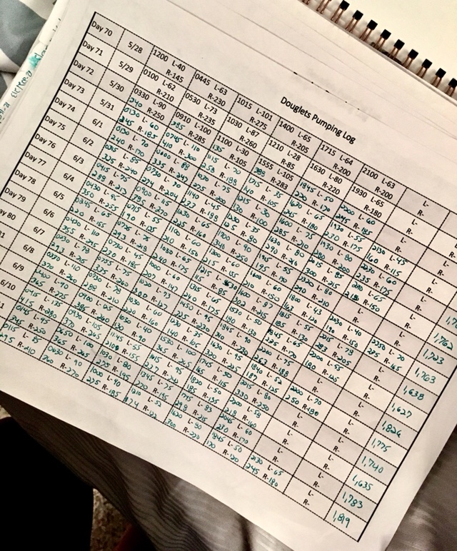 One more milestone, not for the babies but for me! I finally hit 2000 ml (roughly 67 oz) of milk production in a single day. Has taken me a LONG time to finally reach that!