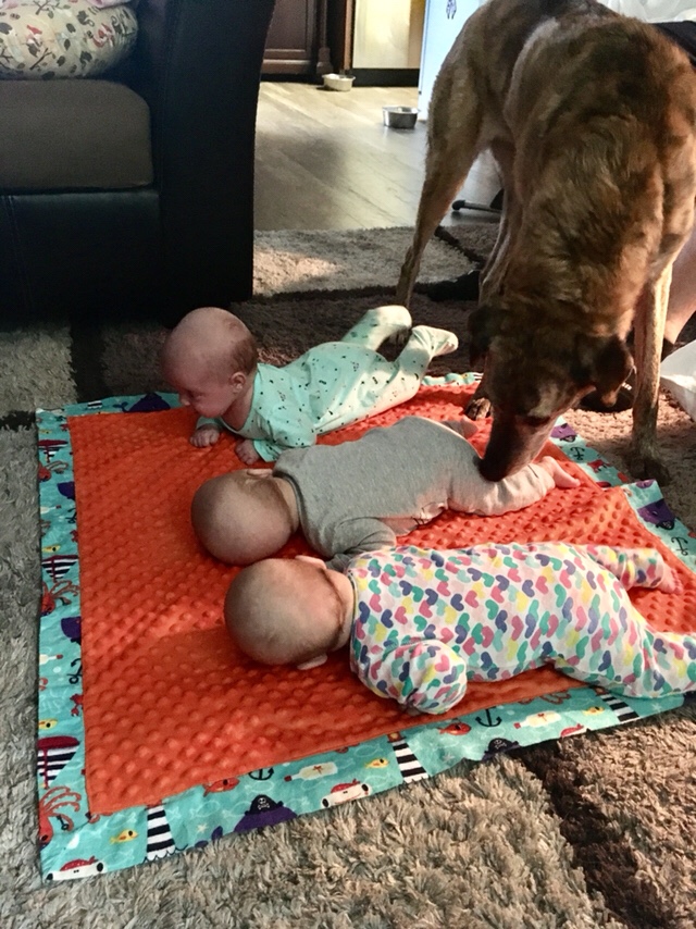 It blows my mind they are 17 weeks old! Time sure is passing quickly. We haven’t hit the giggle stage yet, but are definitely seeing lots of smiles at us, toys, and anything brightly colored. I also get a nice smile in the morning from everyone.