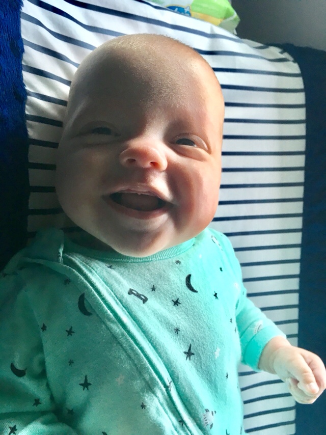 Reagan remains our smiler, and she’s started to baby talk a lot! She is also the strongest of the three, lifts her head very well, and uses her legs to push her body up. She’s going to be my soccer player!