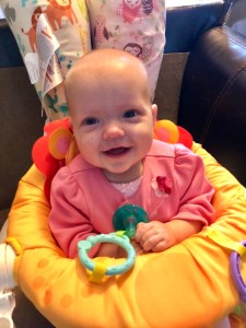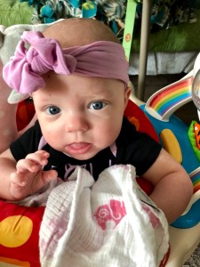 Favorite Baby Food: She is not a big fan of baby food yet…but we are working on it. She tolerated pears and sweet potatoes, and carrots so far seem to be her favorite when she decides she wants to eat.