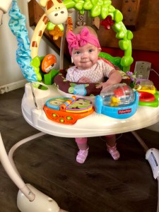 Dislikes: The jumper! She is NOT a fan. We’ve put her in several different styles and she literally sits there for a couple minutes, and then fusses. She will look at the toys a bit but refuses to bounce or jump at all.