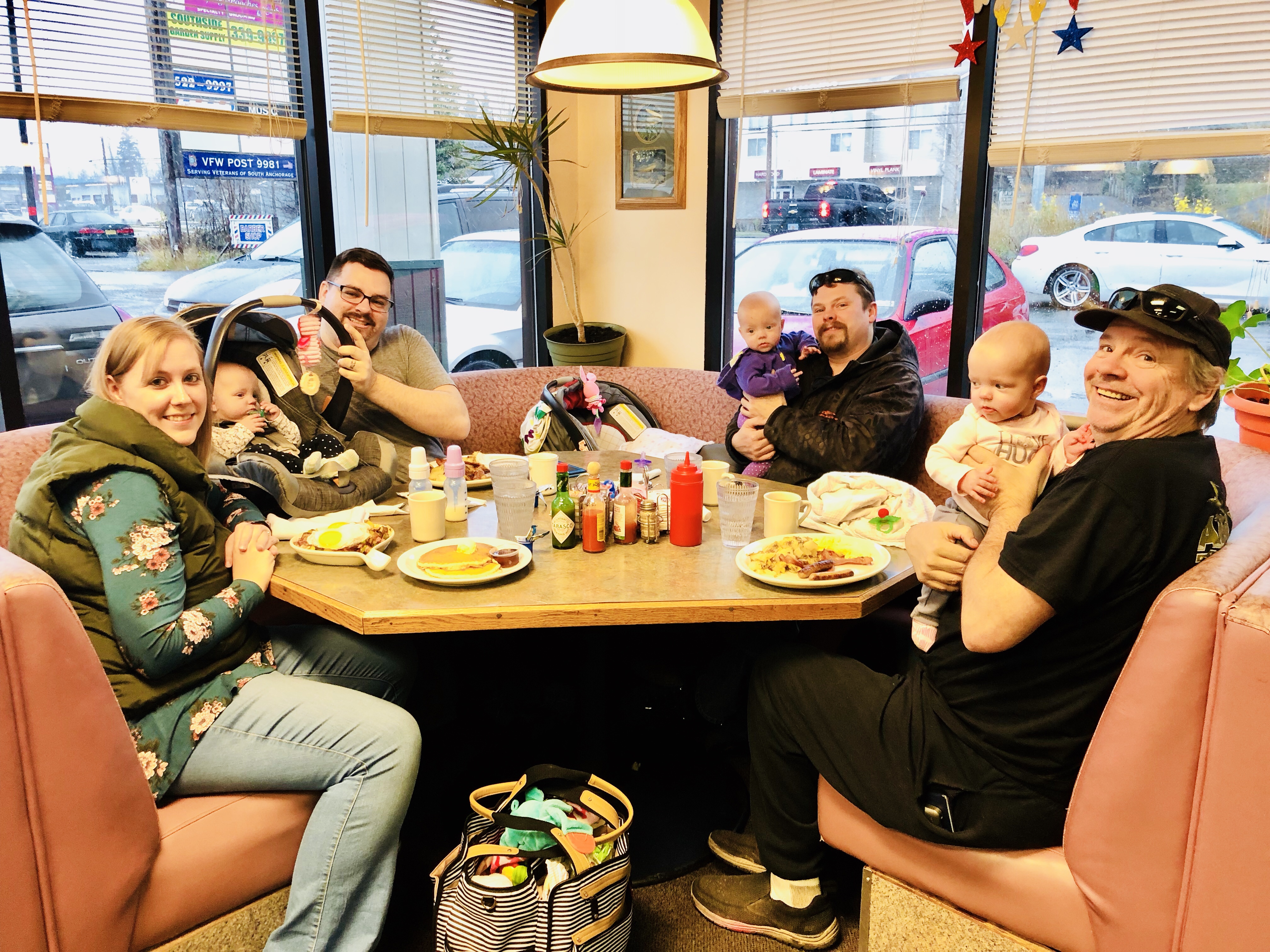 Sunday morning we went to breakfast at one of our favorite spots in south side Anchorage, after being told by the owner of the family owned business a few weeks prior that we should definitely bring the babies in!!