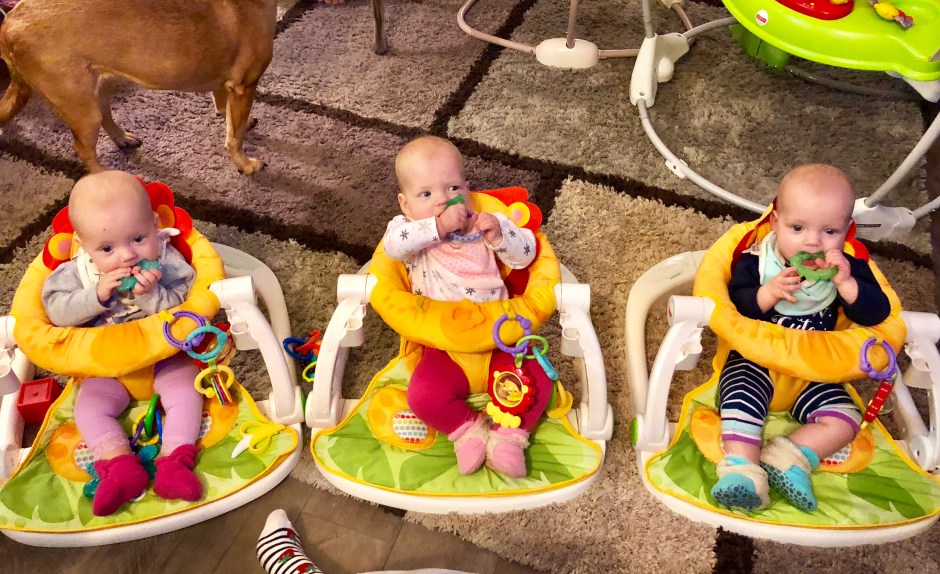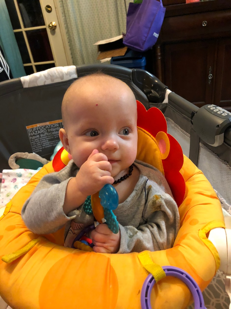 Everyone is drooling and loving the frozen teethers. We are improving on baby food and they become little starving baby birds when we get out the spoons and food.