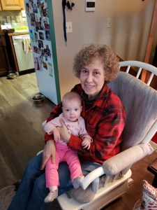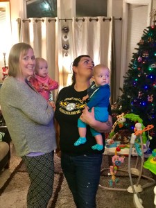 Some family has come up to enjoy the first holiday season with us. The girls really enjoy pulling on their Grandma Sue’s hair,