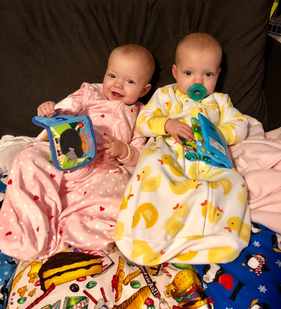 The girls have always been swaddled for naps and nighttime. While this doesn’t work for all babies, we were 3 for 3 since coming home from the hospital. As the girls continue to grow and find the world more interesting, so far we have been unsuccessful in figuring out how to “unswaddle” them.