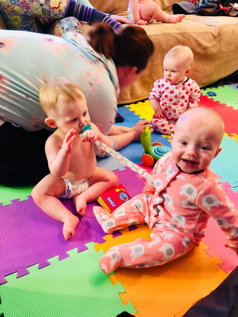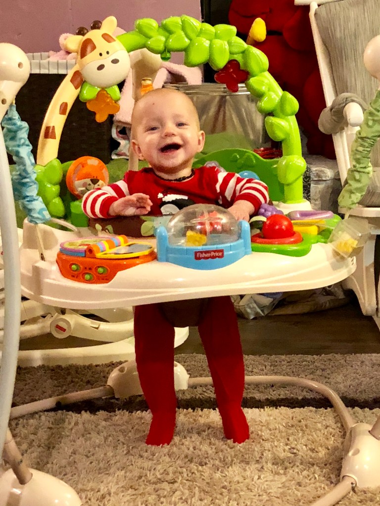Who enjoys jumping the most? If I have to choose one baby, I think it would be Emerie. When she’s excited to be in the bouncer, she is jumping to the heavens and giggling.