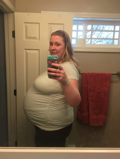 If I had to pick a toughest week during the pregnancy (ignoring the 4 months of solid “morning” sickness that lasted every second of the day), it would be Week 30. I actually felt better Week 31 and 32. We measured the belly on the weekend of that brutal week, and I grew 5″!! Granted some of that was probably the girls shifting around a little, but FIVE INCHES. Not enjoyable and no amount of repositioning made me feel comfortable.