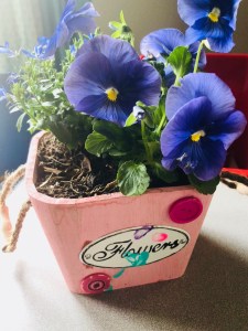 I came home from work to a wonderful gift from Nanny Chris and the girls. They decorated a flowerpot for me to enjoy, in the girls’ colors, with tiny baby fingerprints. So very thoughtful and sweet! Also quite impressive she did arts and crafts during the day…that takes a lot of effort!
