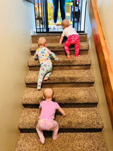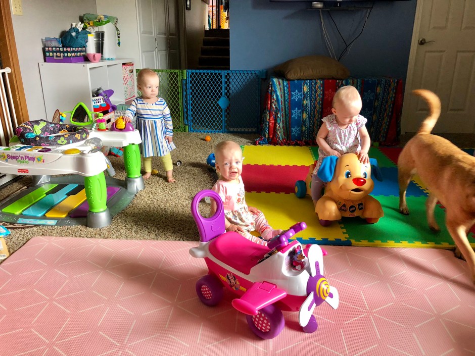 This past week we’ve been cruising on getting good, uninterrupted sleep at night. By that I mean, for the first time in over a year, the girls slept through the night FOUR days in a row, without even a peep. I attribute this to their new found walking skills tiring them out, and we’ve been very dedicated to ensuring they burn as much energy as possible each day.