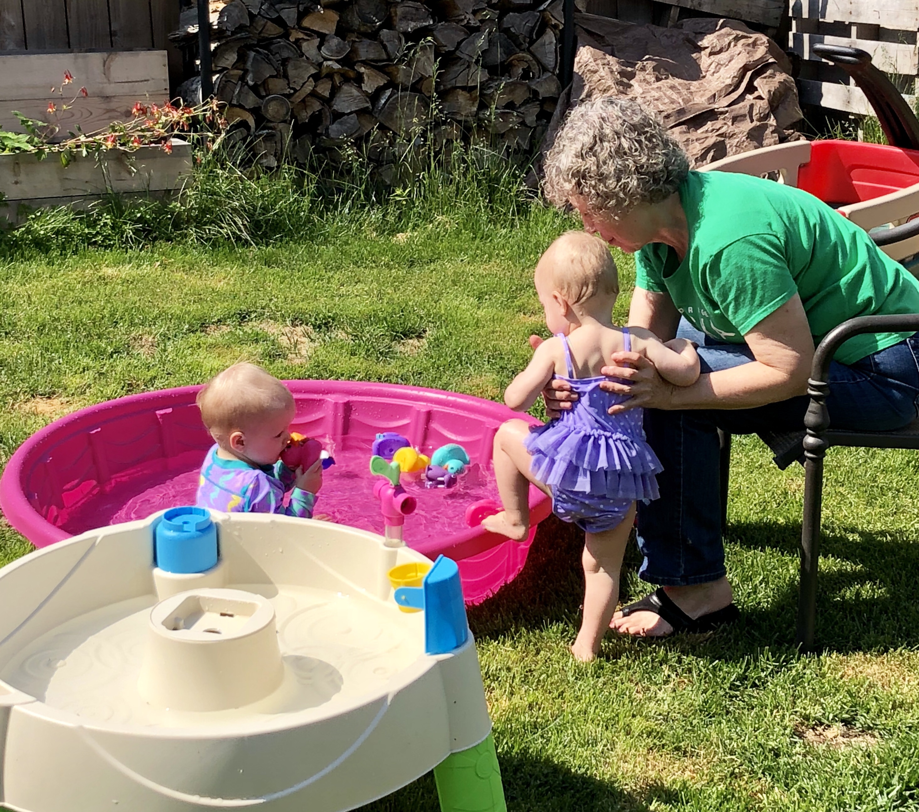 The girls thoroughly enjoyed climbing in and out of the water. It was a rare moment when all three were actually splashing in their together. Typically someone was off running across the yard while another was splashing at the water table and the third in the pool.