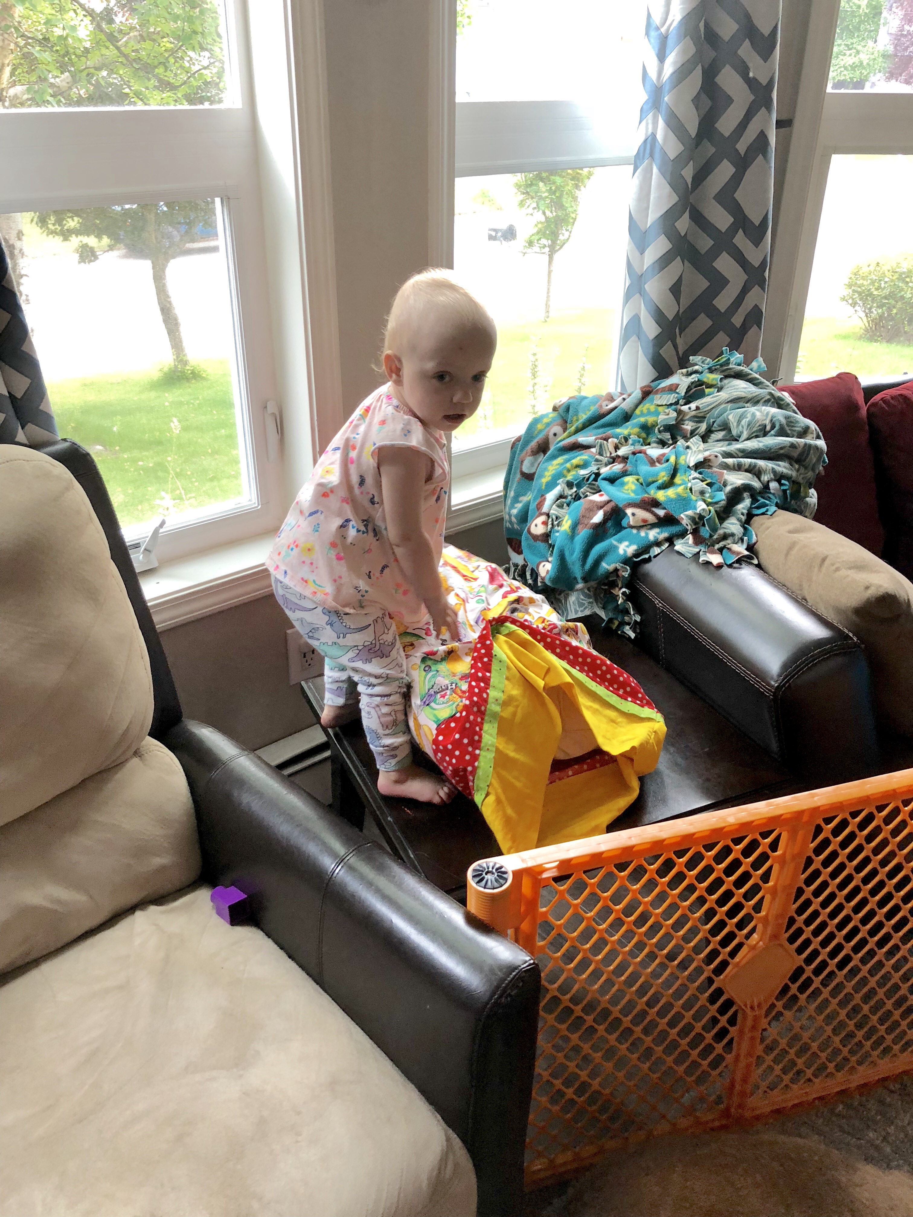 The last minor household change in the past couple of weeks involves more freedom. During the day the girls freely roam the living room, with the baby prison opened up to block off the couch and living room windows, which are clearly meant to be climbed on. Everyone once in a while someone figures out a way around the gate, but for the most part we’ve been able to outsmart that toddler geniusness (for now!). We aren’t too far from no more baby prison, although luckily no one has figured out how to climb the walls yet, unless there is a climbable toy nearby.