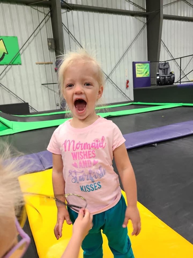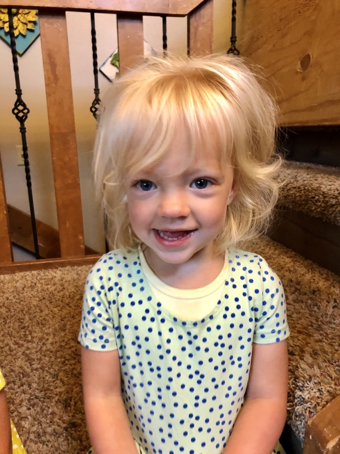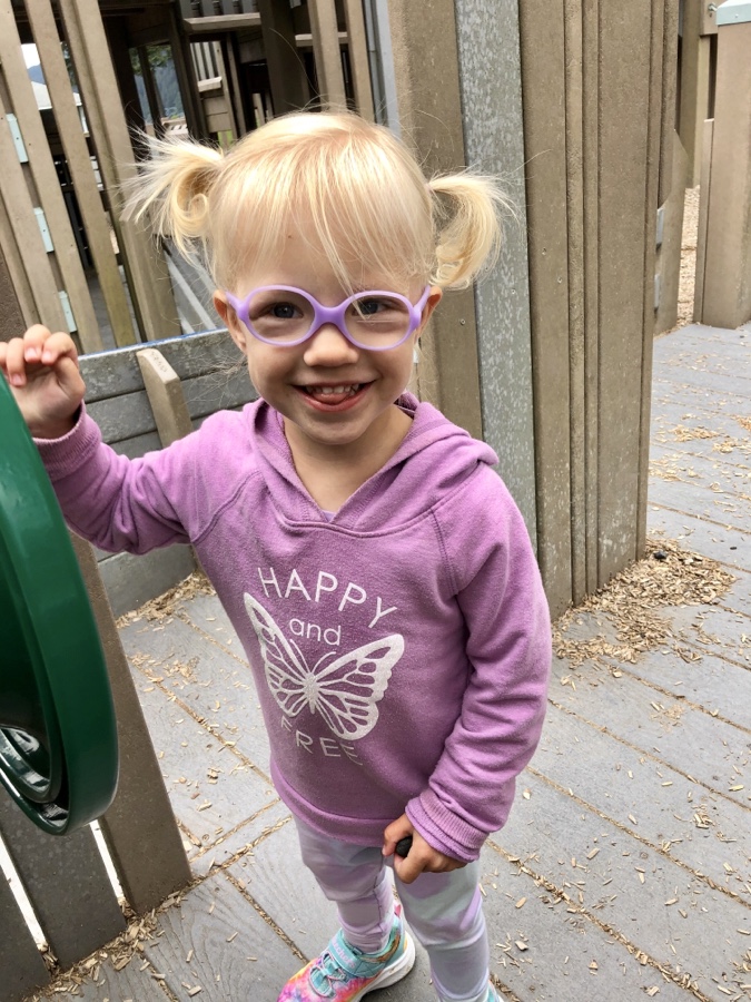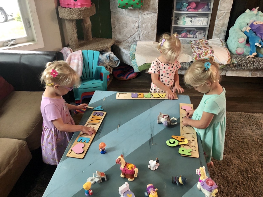 The daycare teachers tell me Emerie is thriving in school. We were concerned about the separation of classrooms at first- instead of being detrimental or upsetting, her independence is thriving. She is very attached to her teacher, Miss Maddie, and I’m sure that is one of the reasons for excelling. I’m told she is the class helper when it comes to cleaning up, which is an accurate depiction at home as well. The monkey bars are one of her favorite activities out on the playground. Breakfast and recess time have all the toddlers together, which certainly helps the mood when she misses her sisters; it’s great to see her doing so well.