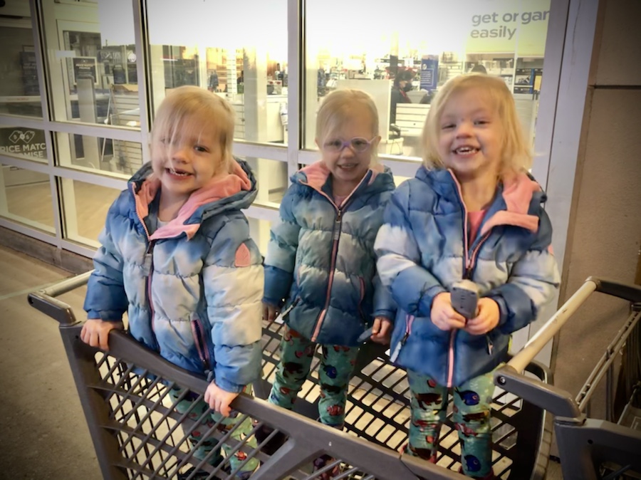 We are in full parent mode on breaking a few bad habits- this is likely due to minimal socializing outside the house and daycare all winter and something that just has to be learned through practice. We continue to harp on everyone to improve listening and obeying while we are out and about, with Emerie complying the best and Harper and Reagan taking turns on actually doing it. Emerie prefers to hold your hand and has no desire to run off, while the other two seem to embrace their adventurous nature. The few excursions we’ve attended lately resulted in several major tantrums on the ride home, when we give them all the chance to obey and walk to the car and climb in and they choose to run into the parking lot or the opposite direction. This is apparently a hurdle to overcome for Harper and Reagan, Emerie complies every time and has received rewards for it while the other two scream they “want to listen!” but don’t actual listen. Obedience is a bit better getting out of the car than loading up and they will stand by us and wait until everyone is out. I attribute this to being in a new place so they don’t want to venture off; not so much to obeying us. Hopefully our disciplinary measures will be enough by the time the snow melts or we are in for some interesting (and grumpy) toddler adventures next season.