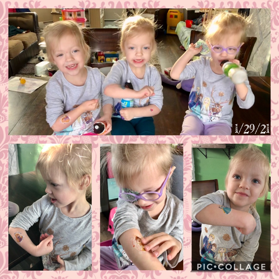 One morning we broke out tattoos. The girls thoroughly enjoyed Auntie Janelle getting everyone a princess and a heart or butterfly, with Paris doing a matching one at home! The girls demanded we call Papa Cliff and Grandma Sue and show them.