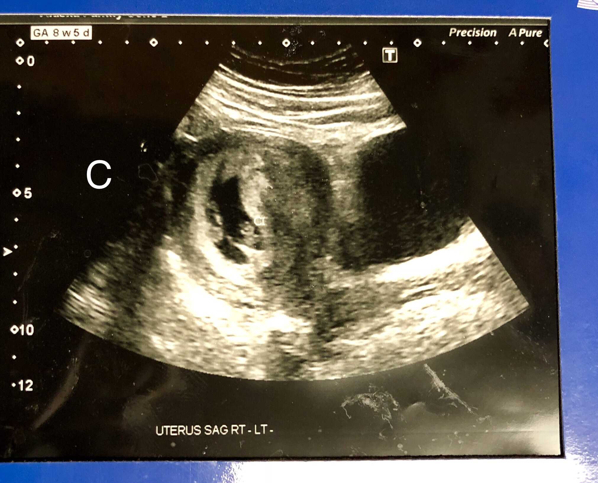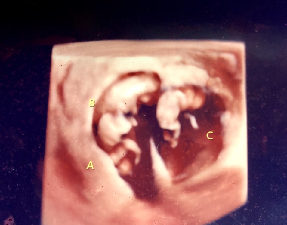 Haha not quite there buddy…I handed him a second ultrasound with a Baby C written on it (a very small C) and it took him a moment to understand. Triplets?? TRIPLETS!?