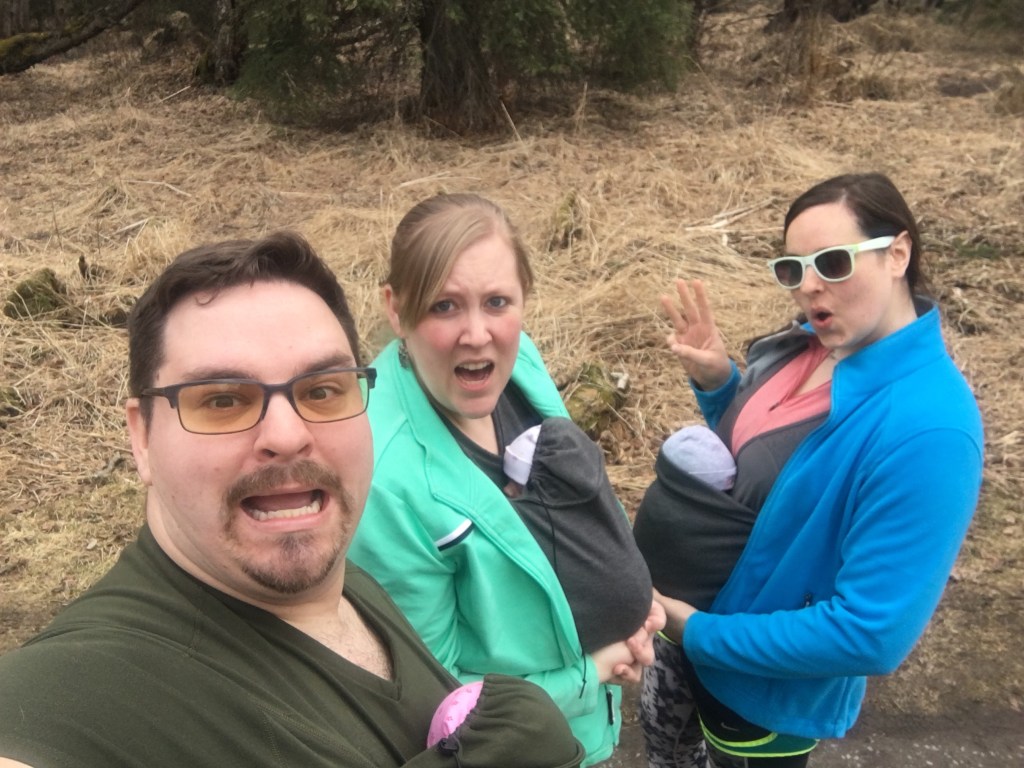 Here we are carrying all three in Lalabu Simply Babywearing shirts thanks to help from a friend. Going on walks around the neighborhood, with the dogs in tow, was so much easier this way when the girls were small. Because we had preemie babies, we used these shirts for several months before the girls outgrew them. We highly recommend; they make life easier and more efficient. So much of our day is filled with clean up and preparing for the next part of the day; these shirts give you the time and hands to wash bottles, fold laundry or go for a walk. 🙂