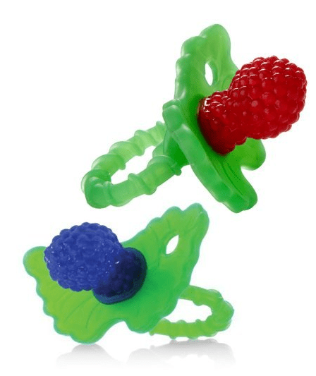 These teethers can also be put in the freezer for additional relief, although they don’t stay cold for very long once given to the kiddos. They are available at most stores (Walmart, Target, etc.) or on Amazon at: Banana Teether