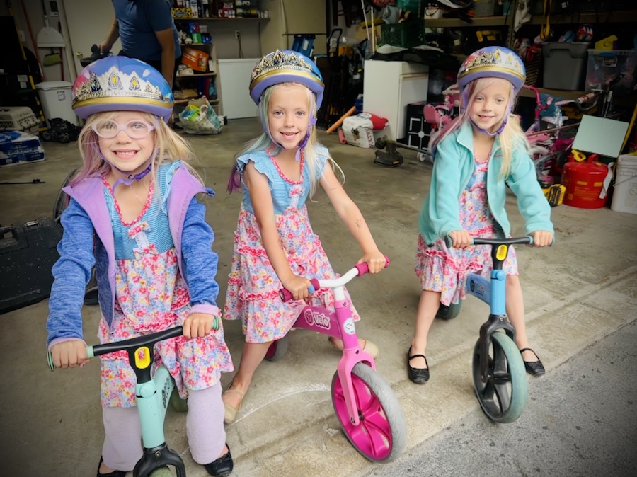 What are the biggest differences between the three? What are their similarities this year? All three continue to enjoy much of the same things, as in years past, like princess everything, dressing up, riding bikes and swinging and playing pretend. Emerie continues to self entertain and I often find her in the bedroom playing with dolls, or sitting and listening to a Tonie story on the chair, or in the bathroom making a huge water mess but having the best time! Reagan will sit and color for long periods of time while Harper wanders off with Babela for “nap time.” Reagan learns new skills the quickest and with the least effort, this is especially true with her school work and letters and reading, while Harper becomes flustered before putting in too much effort. Emerie takes a bit longer to gain a new skill and you can see her kind methodically thinking out how it all works, just like she did when younger.