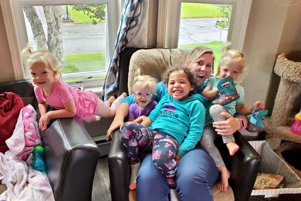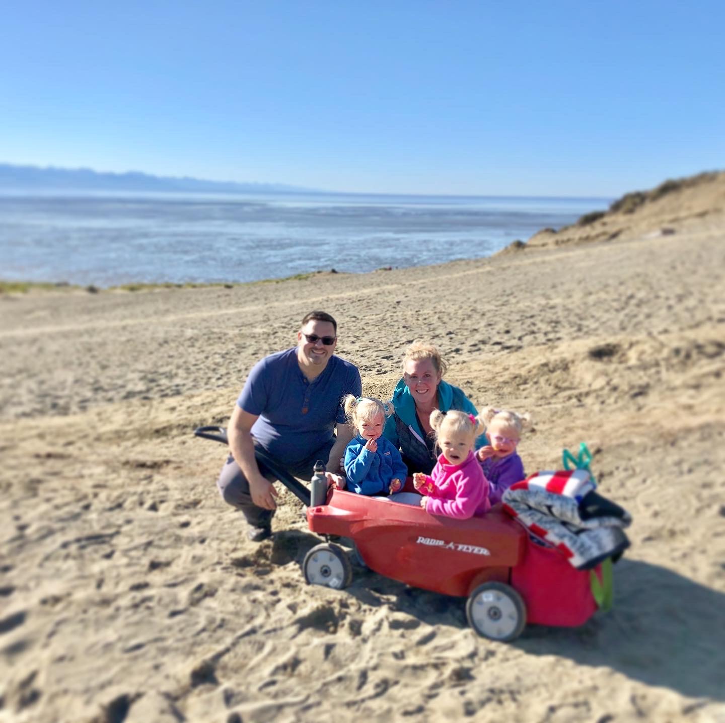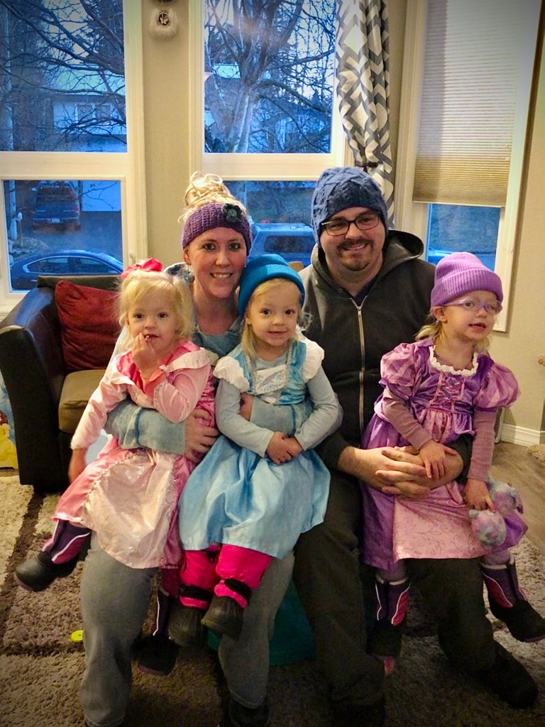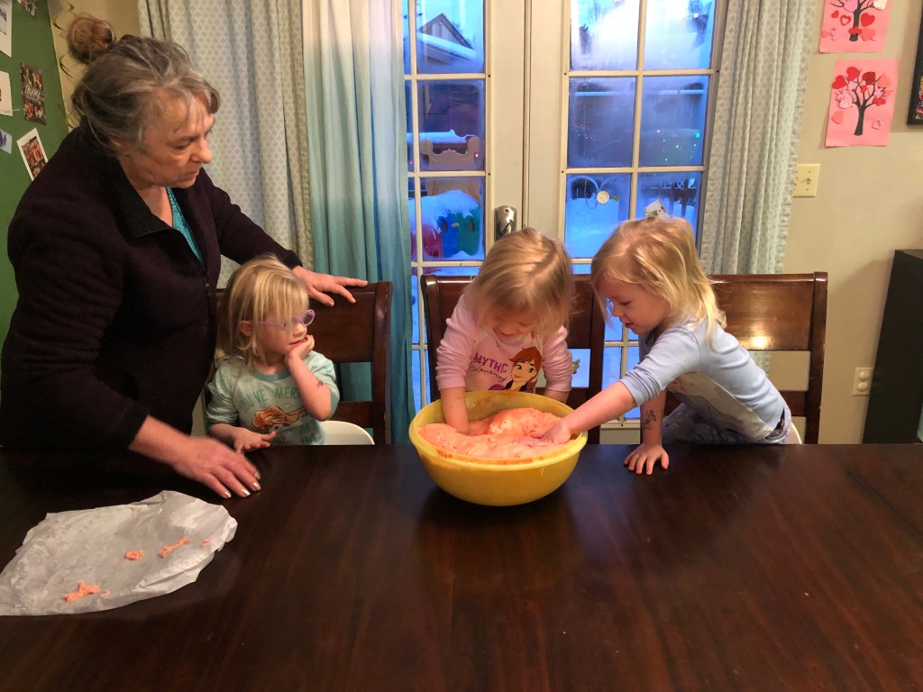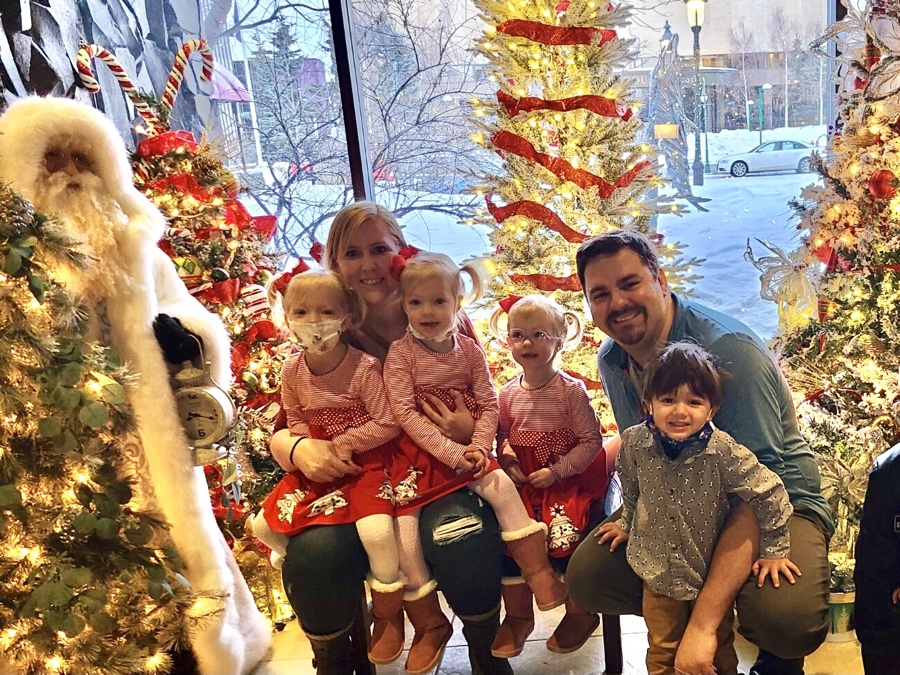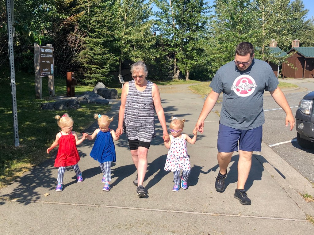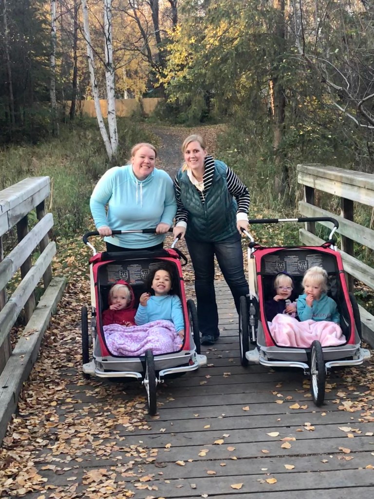 But not everything is different- of course there are also similarities to raising three of the same age at the same time. Everyone likes to sit in the middle car seat and fight over it, with Emerie the best behaved of the three during rides around town. Favored activities include the trampoline park, sledding, playgrounds, neighborhood walks, swinging (yes it needs its own category), baking, play dough, arts and crafts, anything with buckets and scoopers and pretend play. Everyone loves to play in the bathtub and make a huge mess on the bathroom floor. They all LOVE trash truck and snowplow visits, seeing forklifts at the store and helping hold things in a shopping cart. Moose sightings are a huge deal and worth talking about for days. Everyone loves their designated colors and fully believes they should never have to share something that is “their” color, including silverware and dishware, clothing and any type of toy/stuff animal that is pink/purple/teal. All three love to FaceTime with family and hold the phone themselves, hogging it as much as the parents will allow and running off with it to hide.