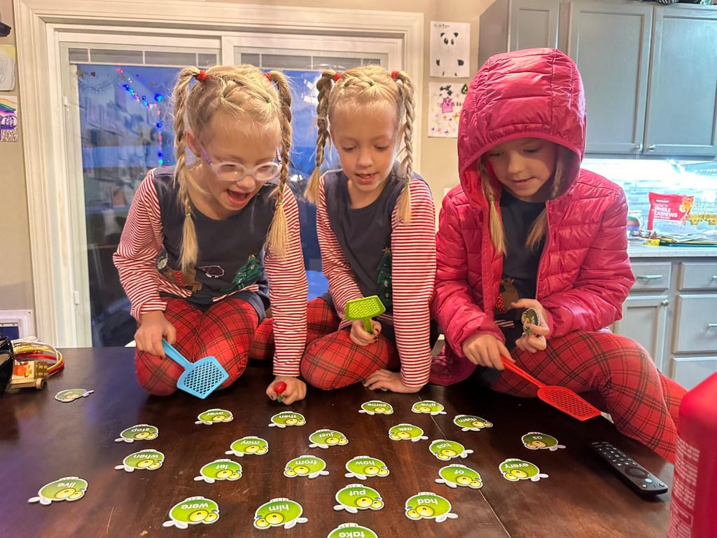As we wrap up summer and get back to a more normalized school schedule, my goofy girls continue to switch with each other during the day, and who is who depends on the day! Harper and Reagan keep wearing each other’s colors, demanding adults refer to them by the other sister’s name, and in addition to how funny that is, it’s also hard to purposefully call them the wrong name! Harper also attempted to pull one over on Grandma Sue by rocking Emerie’s glasses and smiling without showing teeth. It always amazes me how swapping glasses between them really makes them look like Emerie!
