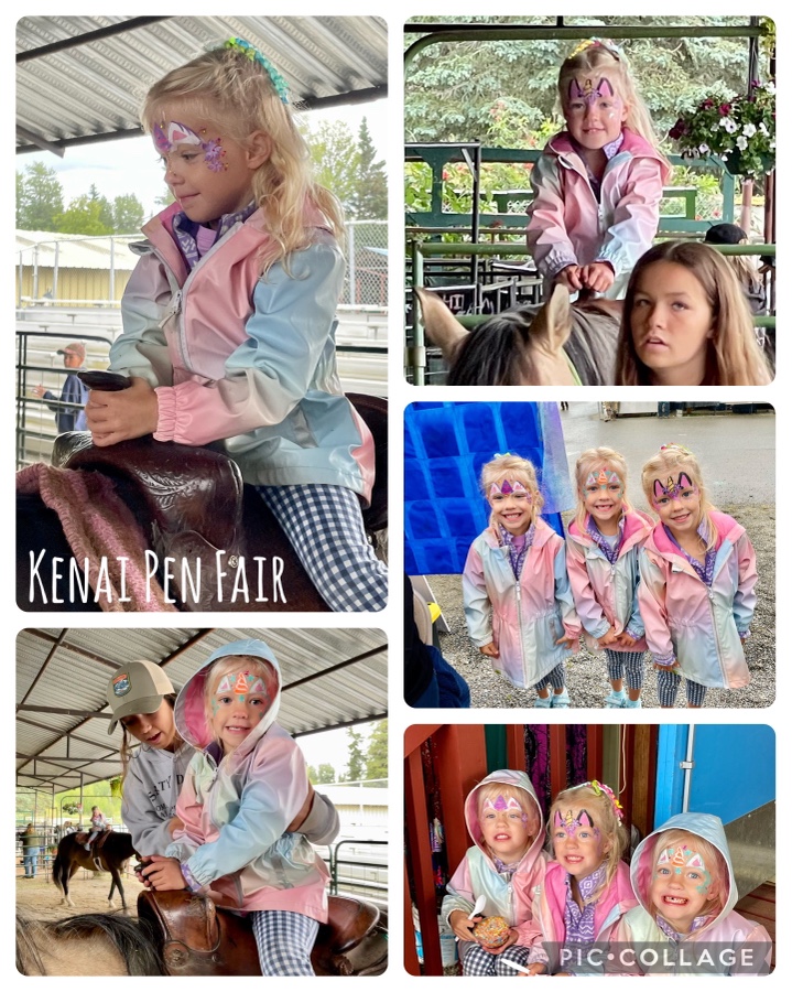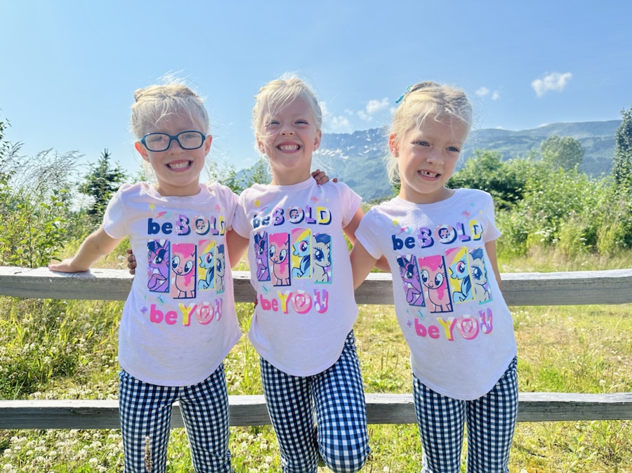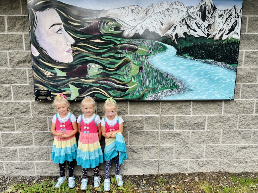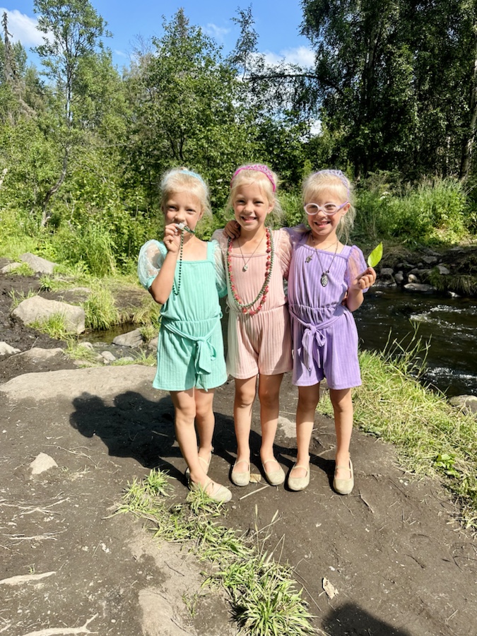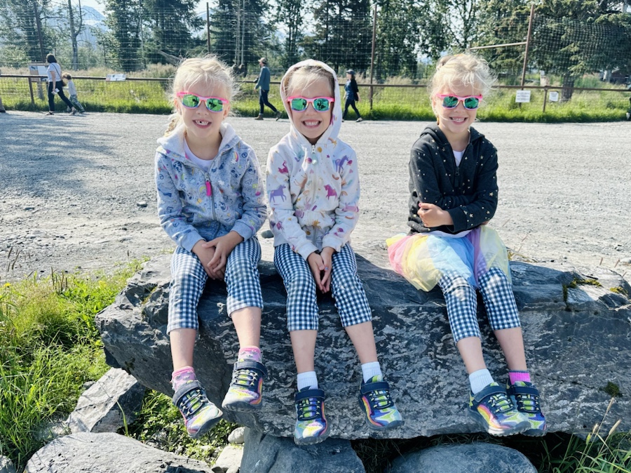 Fourth of July weather was nice for the most part, at least in Juneau standards. It poured for a few minutes during the first downtown parade, nothing raincoats couldn’t handle. It didn’t diminish any candy collection or excitement; and Juneau may have a better parade than Anchorage! This being my first experience at it -we tried during our unplanned visit in 2019 and gave up due to the lack of parking and tiny toddlers in tow- and it was really fun. We grabbed hot coffees and smoothies at Heritage and walked over for the fun. The girls wore fancy flag dresses recycled from another triplet mom, fancy braids and hair ties (of course), and to top it off everyone’s faces were bejewled with sparkly “gems,” including Craig’s. Auntie Amanda was a little harder to convince, although I do believe one, lone gem made it on her cheek after we pinned her down.