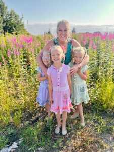 Another day one of my fabulous coworkers took us out for the girls’ first boating experience. Balancing their enthusiasm with safety was crucial, as we caught waves in hopes of seeing some wildlife. Riding a boat with three kids in Alaska is a minor feat in itself, and the very reason we hadn’t attempted this adventure when they were smaller. Other than the constant adult holding each kid’s life vests as we moved, it was a pretty easy experience and no one landed in the water or needed rescuing, even our wonderful tour guide from triplet time.