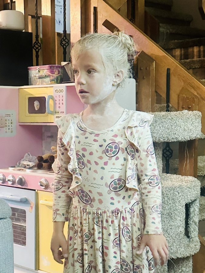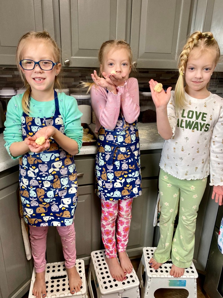 What are the biggest differences between the three? What are their similarities this year? All three continue to enjoy much of the same things, as in years past, like princess everything, dressing up, riding bikes and swinging and playing pretend. Emerie continues to self entertain and I often find her in the bedroom playing with dolls, or sitting and listening to a Tonie story on the chair, or in the bathroom making a huge water mess but having the best time! Reagan will sit and color for long periods of time while Harper wanders off with Babela for “nap time.” Reagan learns new skills the quickest and with the least effort, this is especially true with her school work and letters and reading, while Harper becomes flustered before putting in too much effort. Emerie takes a bit longer to gain a new skill and you can see her kind methodically thinking out how it all works, just like she did when younger.