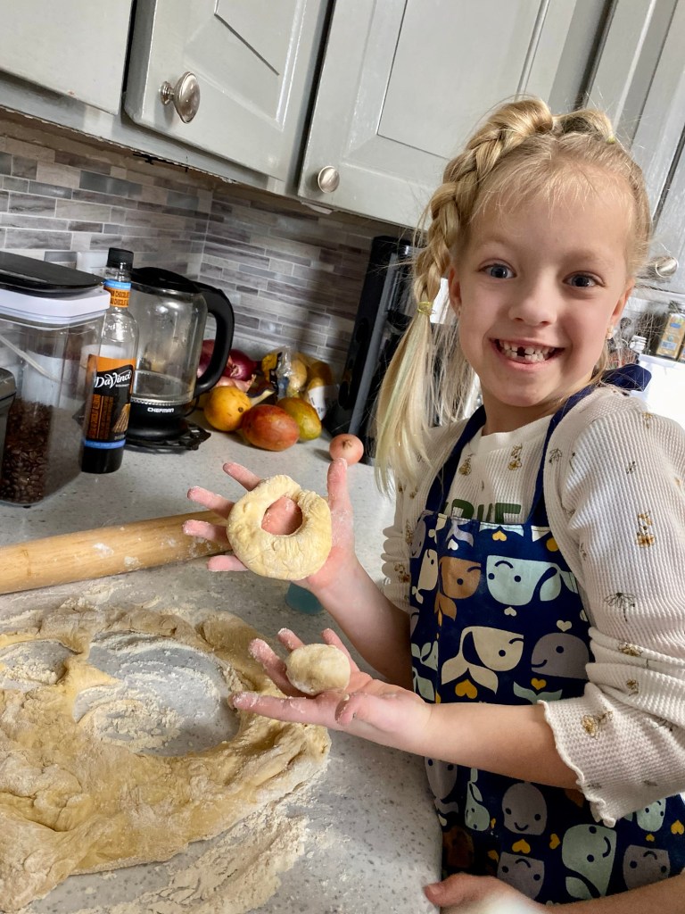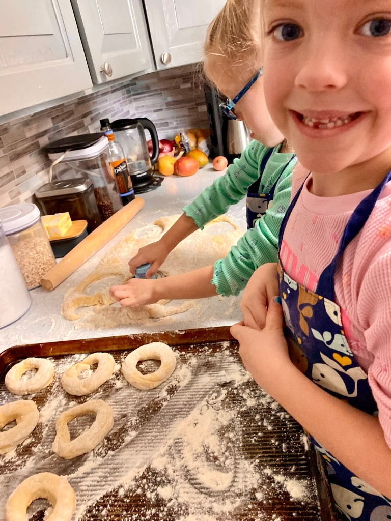 The tiny humans are greatly improving their cooking skills. One day while Mom and Dad went to the office, everyone practiced their baking skills and produced chocolate and powdered sugar covered donuts. How many of these were eaten that afternoon? That’s a great question that I probably don’t want to know the answer to; much flour was likely consumed as well. I’m happy to see my three little bakers love to cook and try goodies, since this is definitely in their DNA on both sides! From the moment Sue gets off the airplane, everyone starts requesting homemade donuts, that will certainly be a good childhood memory for them as they age into adulthood.