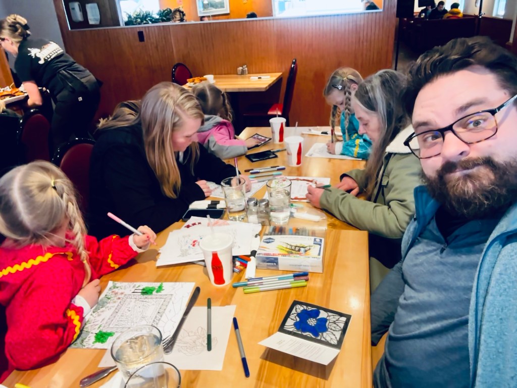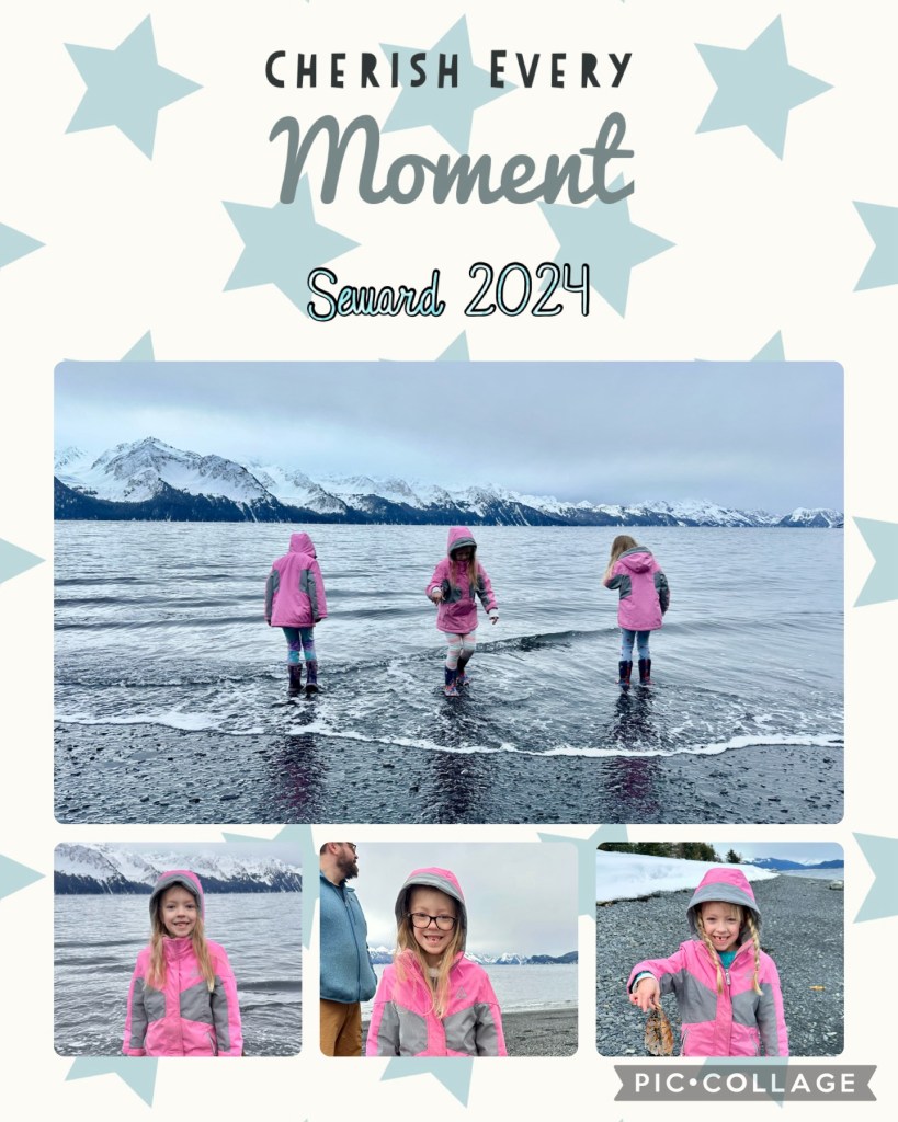 Spring break wasn’t only cooking and chores- some fun was also shoved into the latter half of the week. Craig booked a pre-birthday trip down to Seward and luckily the weather cooperated and the road through the pass was pretty clear for winter time. My little ladies made the drive down and back with no screen time, fully entertained with coloring, snacking, listening to music and playing with a few toys. It helped that Emerie napped most of the way back and Reagan part of it. Harper was happy to keep those eyelids open and catch Craig snacking on any candy, so she could participate ๐