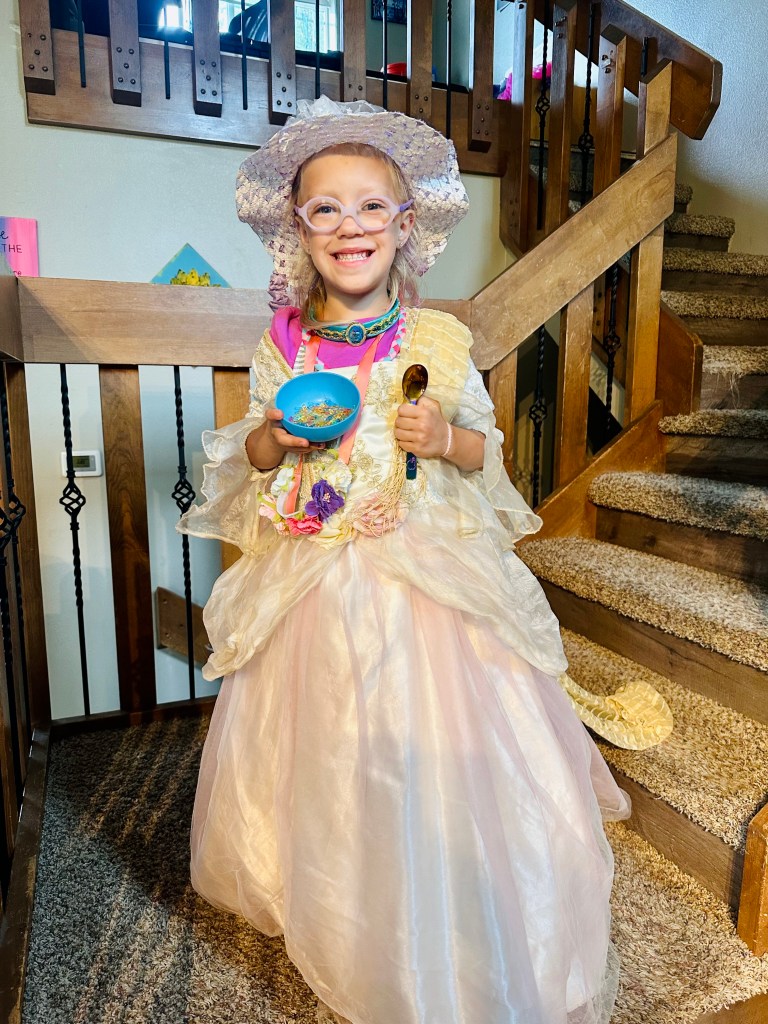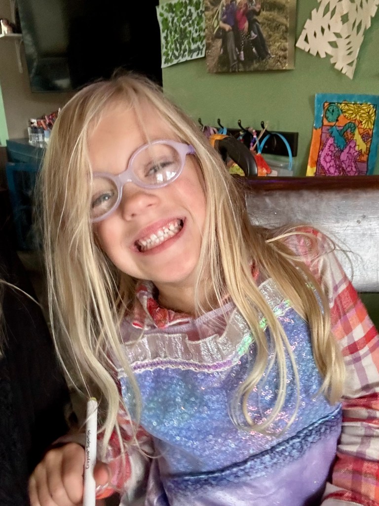 Favorite Movie/Music/Show: music this year transitioned to several new movies, one of which is Trolls Band Together. She now loves all the songs by Velvet and Veneer (the nemesis of the movie!), and occasionally still asks for her “shadow song” by Rihanna, but not nearly as frequently as she used to. And, of course, Bluey and My Little Pony the series.