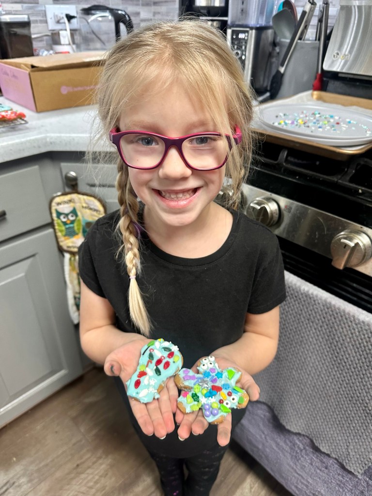 As we round out another year, Emerie still maintains her love of being at home and hanging out in her room, listening to stories on the Tonie box or sorting through picture books. She seems to run a bit colder than her sisters and often wears a hoodie or coat, similarly to her Grandma Anne! She continues to eye patch on weekday mornings and the school year is a bit more of a struggle, mostly because she sees other kids (and sisters) don’t do it and is more observant on that. Collecting tiny things continues to be one of her favorite hobbies and we find all kinds of random things around the house.