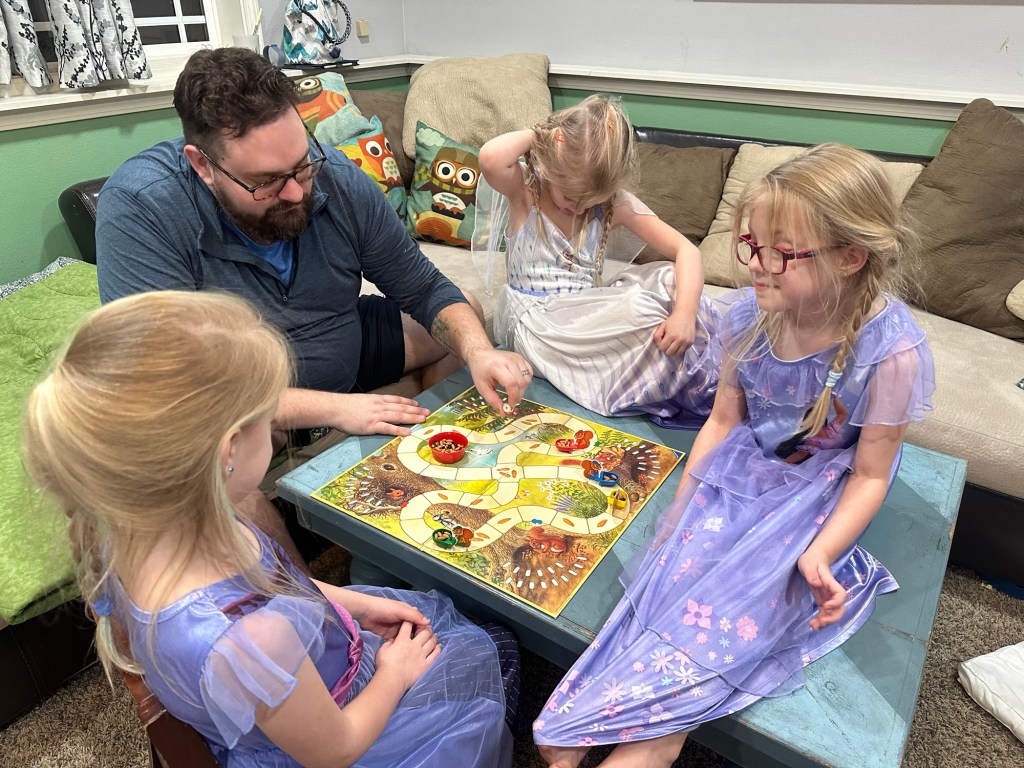 Who is Team Mom and who is Team Dad? This remains consistent, Emerie is 100% Team Dad, although I do get a solid snuggle in every now and then. On the other hand, Reagan is 100% team mom and Harper trends toward me, but has her dad moments.
