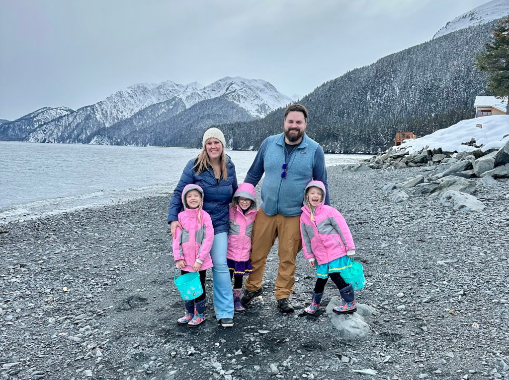 A couple harbor seals played out in the water as we walked down the opposite direction as the tide recessed. With Harper’s love of seals, and the fact that wildlife always pops out and says hello during our Seward visits, makes it one of the girls’ favorite spots. The open restaurant wasn’t our normal summer stop at the harbor, where we could keep an eye out for the wild animals, but clearly the girls were hungry, because all three scarfed down a whole cheeseburger and french fries. It was a relaxing afternoon and evening and other than the never-going-to-sleep shenanigans, everything went down without a hitch.