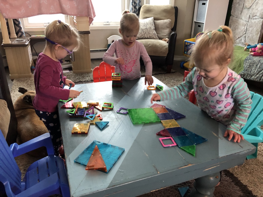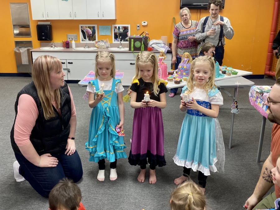 Birthday party number five left our previous covid-era parties in the dust. Over the past three years, we slowly increased the attendee list throughout our apocalyptic life experience (not sure if that reference is from covid or raising toddler triplets); age two was a family only party since the city shutdown on their birthday, their third birthday at the jump park allowed everyone to mostly separate but still celebrate, and their fourth birthday at the Alaska Club play center was a complete success of friends and loved ones- the girls still talk about it a year later. My end headcount for this year was 26 kids, plus our three birthday beauties, and a lot of adults and family enjoying fun (and noise?). We opted out of inviting the entire preschool class and let the girls choose the attendee list, snagging a class list after school one day and letting them choose. The list was mostly girls, sprinkled with a couple of boys, and Emerie insisted that my boyfriend Jude HAS to come. Talking to his mom at the party, Jude commented recently that not only are the kiddos dating, but Emerie informed him- not asked- that they would also be getting married. A girl that knows what she wants.