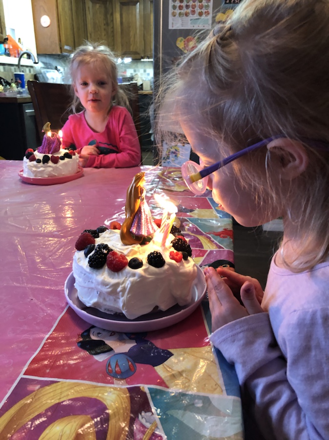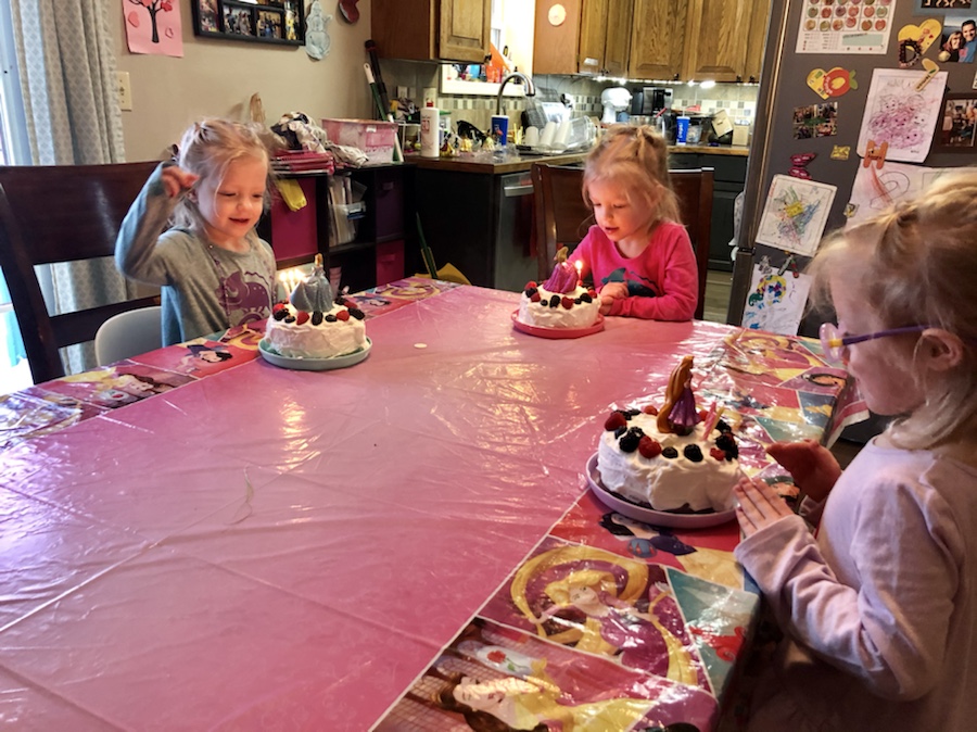 It seems like yesterday that we had the girls fourth birthday, and yet here we are, a full year later already! As expected, Grandma Sue and I attempted to create three masterpieces for the girls’ birthday cake again this year. Considering I believe last year’s accomplishment was quite grand for turning four, we upped our game for age five and added props. This year’s cakes took a lot of time, but it still felt easier than the prior one, simply because the girls are older now and don’t need as much constant attention so we could prep while they played and “helped.”