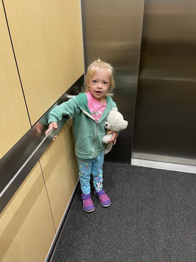 And how did she catch up??? Instead, as if I didn’t have enough dentist visits this month, we scheduled one more unplanned one to assess her sagging front tooth from a toy to the face, a tooth that turned black within a few days, but was still dangling strong from her gum-line. At least, holding strong enough for resistance from an adult trying to yank it out. Emerie was convinced the dentist wanted to take it at the appointment, meaning her face plant and butt in the air on the seat and hiding from him. Superrrr fun. His very short lived assessment after a quick x-ray gave us the green light for the ENT to remove the tooth while under anesthesia the following day.