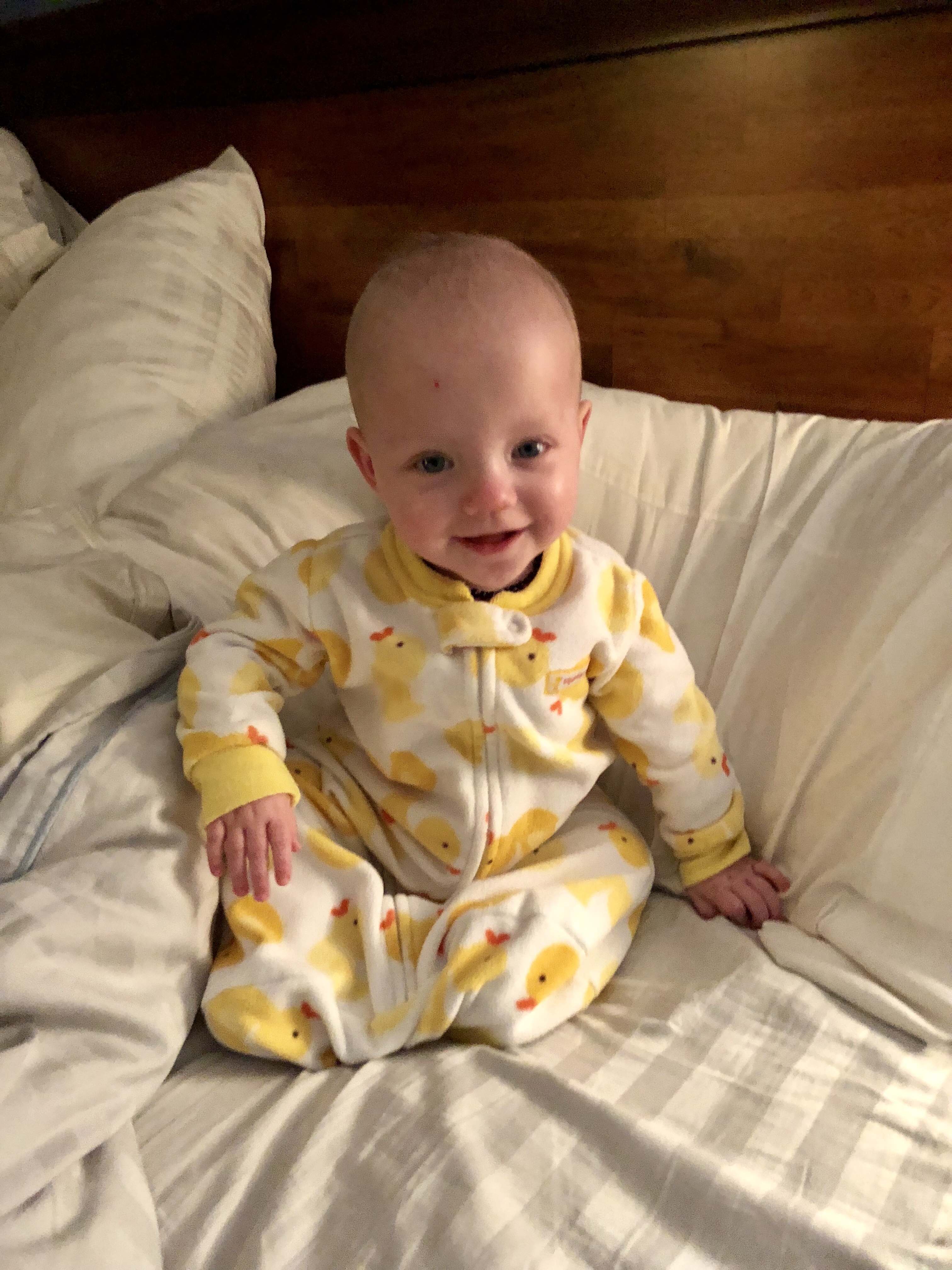 We are back to better sleep with all three, with the exception of Emerie in our bed the last few nights. It does make for some pretty cute photos though…
