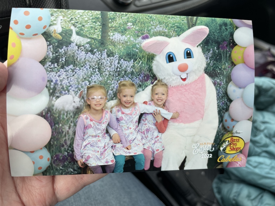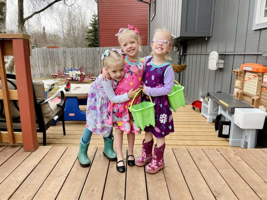 This was our first conservation center visit in quite a while and it was probably the nicest, least windy weather we’ve ever had there. The girls played with stuffed animals and counted waterfalls on the drive down, and saw the train twice! The shrieking for a train sighting woke up Emerie, who had drifted off to sleep. She excitedly watched it out the window and went right back to sleep. Everyone was more excited to pick dandelions and other flowers than get up close and personal with the rescued animals. Emerie walked around the center announcing I’m a triplet! to anyone nearby, whether or not they wanted to know or were remotely paying attention to us. Silly girl. We ate packed lunches at the picnic table by the playground; at one point a hornet- or some kind of massive bee related bug- drove all three away screaming. Now every time anything even close to the same species flies by; everyone scatters. Even dragonflies and mosquitos. Needless to say, there is more reactive screaming now than previously.
