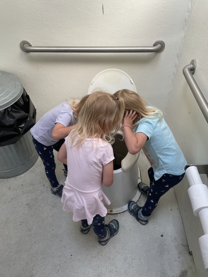 Overall uneventful day, thank goodness! Emerie isn’t feeling better yet but Reagan is clearly on the mend and exploding with energy. She and Harper continue to run circles around each other while Emerie cuddled on the couch and avoided. An hour driving nap rewarded the parents with a little quiet and the post lunch walk a nice outing in the sun, although Emerie wasn’t really feeling it. Two more days!!